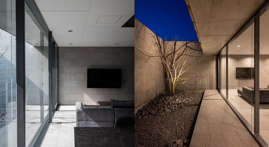 また、光の取り入れ方も重要です。単に明るければ良いというものではありません。時間帯によって変化する光の角度を計算し、コンクリートの壁にどう陰影を落とすか。 自然光が創り出すコントラストや、光の筋が空間をどう演出するか。 これが、住む人にとっての「ドラマ」となるのです。日中、夕暮れ時、そして雨の日でも、その空間が常に美しくあるように設計しています。