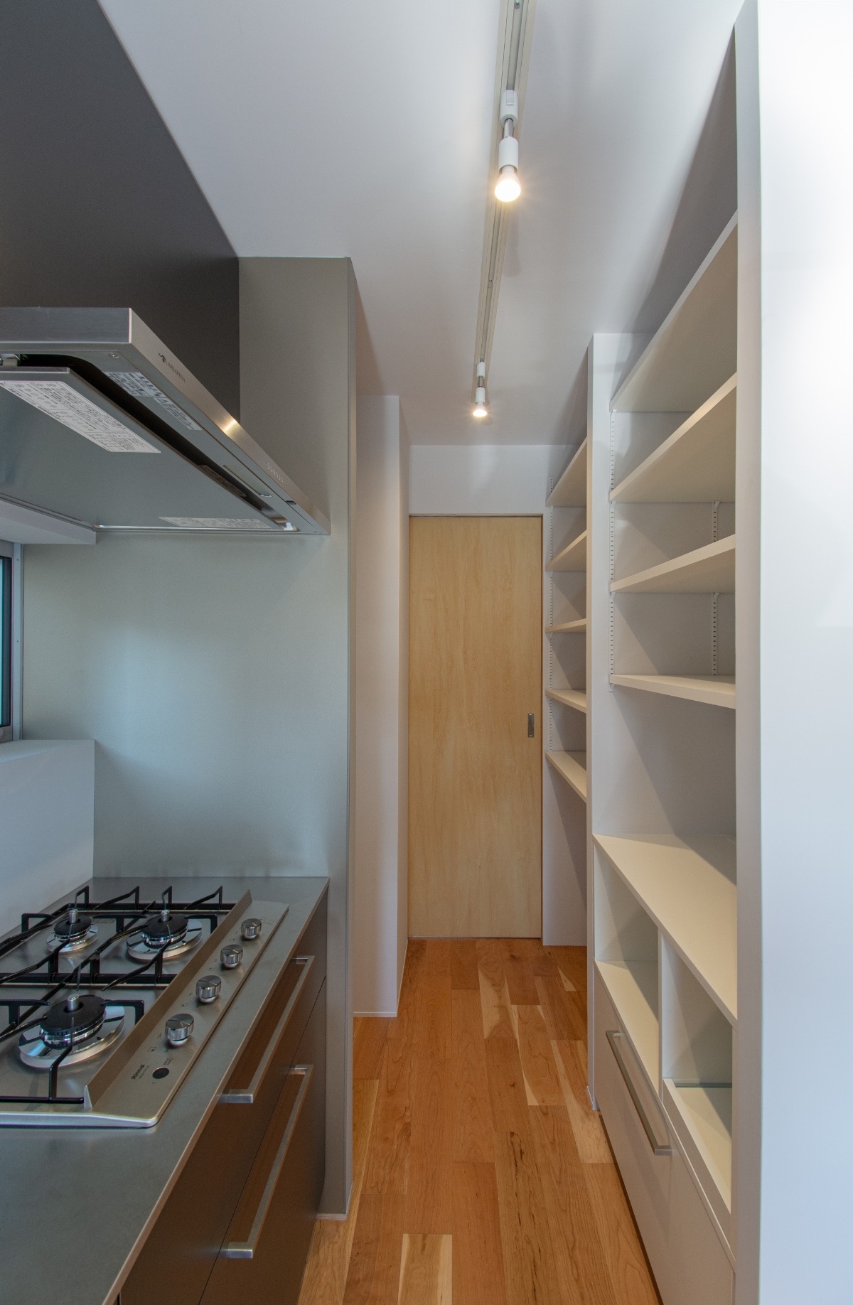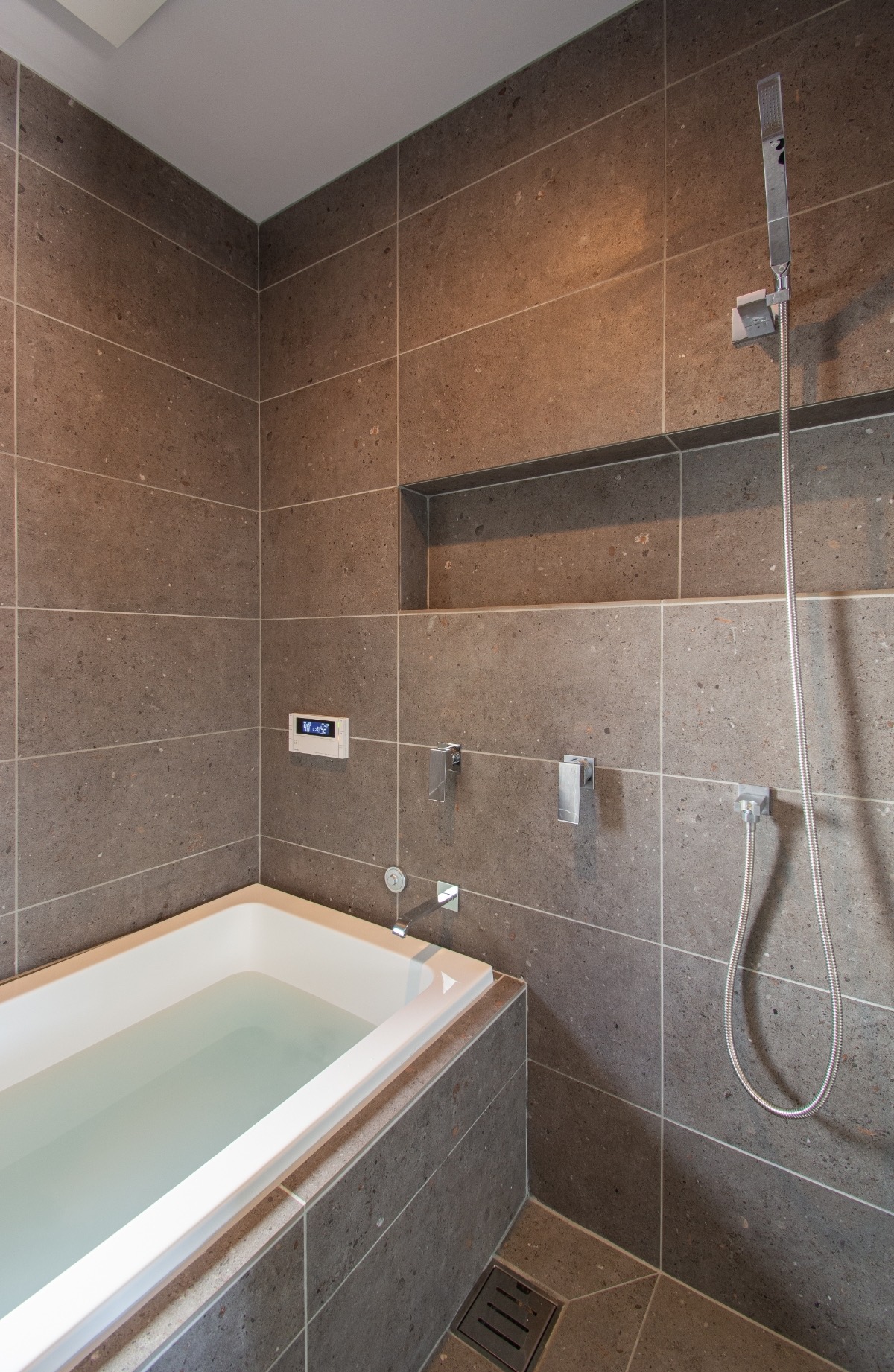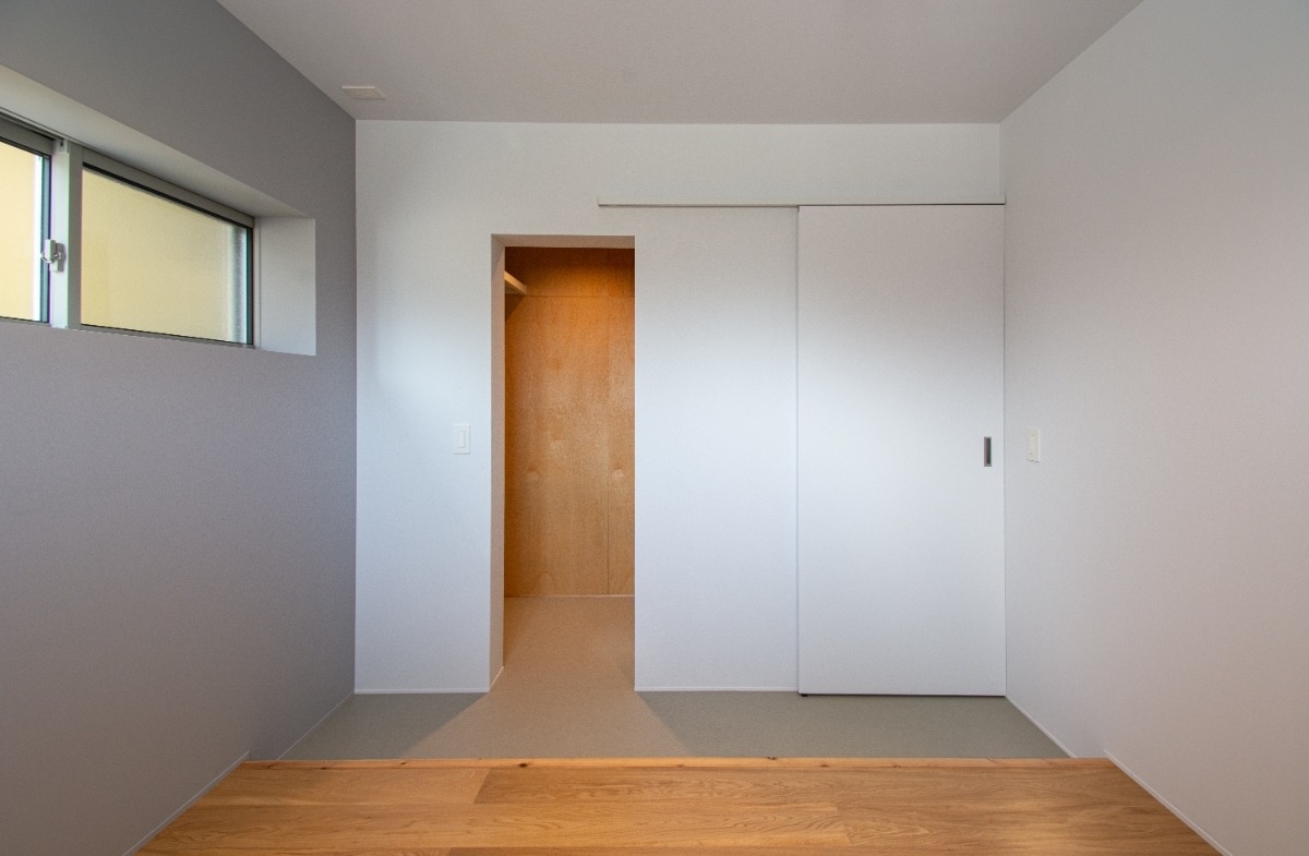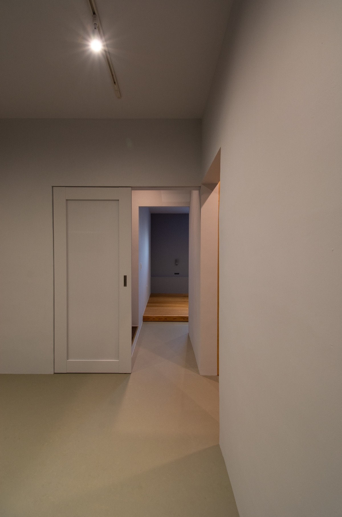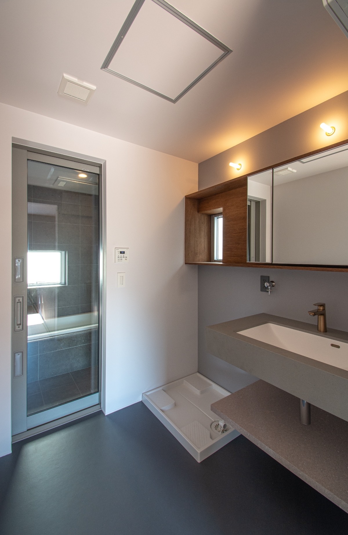 限られた敷地を最大限に活かし、機能性とデザイン性を両立させた都市型住宅です。グレーの壁面と木材、コンクリートといった異素材を組み合わせることで、シンプルな空間に奥行きを創出。トップライトや高窓から取り込む光が、時間とともに室内の表情を変化させ、空間の広がりを感じさせます。都会の喧騒から離れ、自分だけの静寂な時間を過ごせる、洗練された住まいです。
