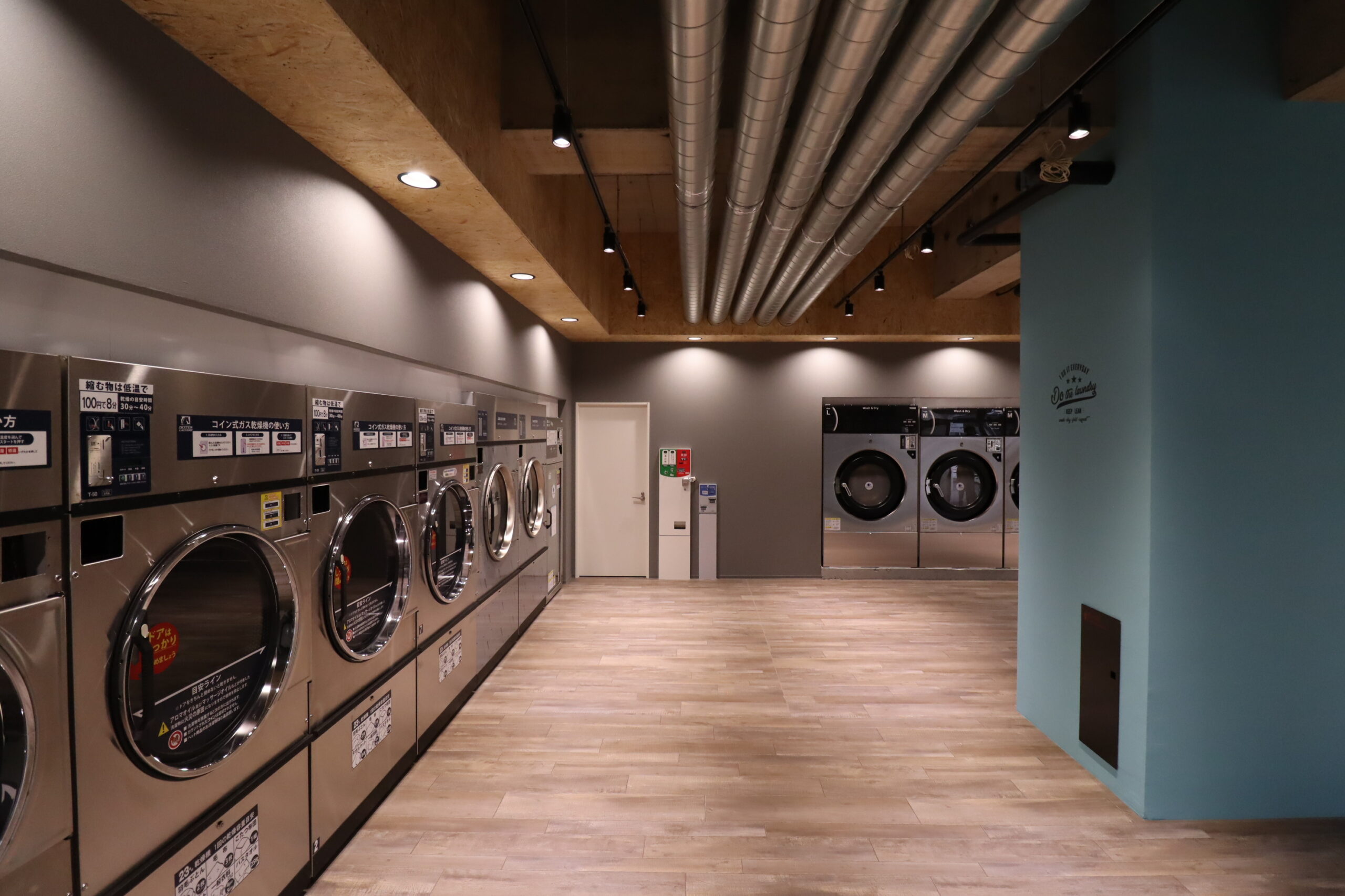 このプロジェクトは、単なる洗濯の場ではなく、地域の人々が集う「パサージュ(小道)」となることを目指しました。打ちっぱなしのコンクリート壁や剥き出しの配管といったインダストリアルな要素に、温かみのある木材やアクセントカラーの壁を組み合わせることで、誰もが気軽に入りやすい、洗練された空間を創出。清潔で快適な環境を提供することで、毎日の家事をより豊かで心地よい時間へと変えることを目的としました。