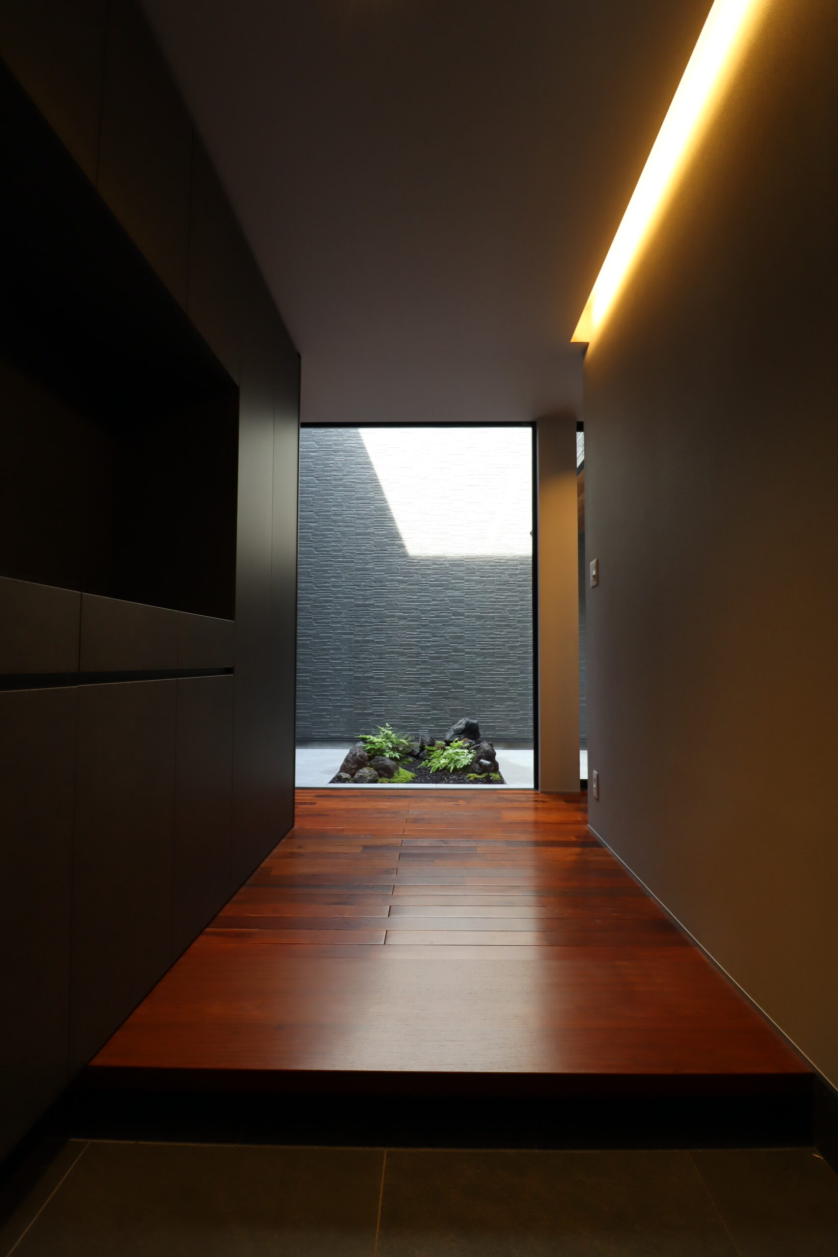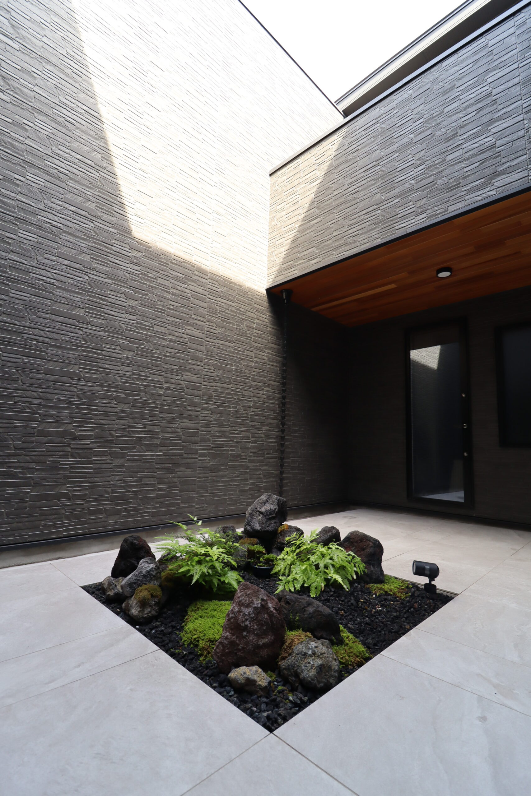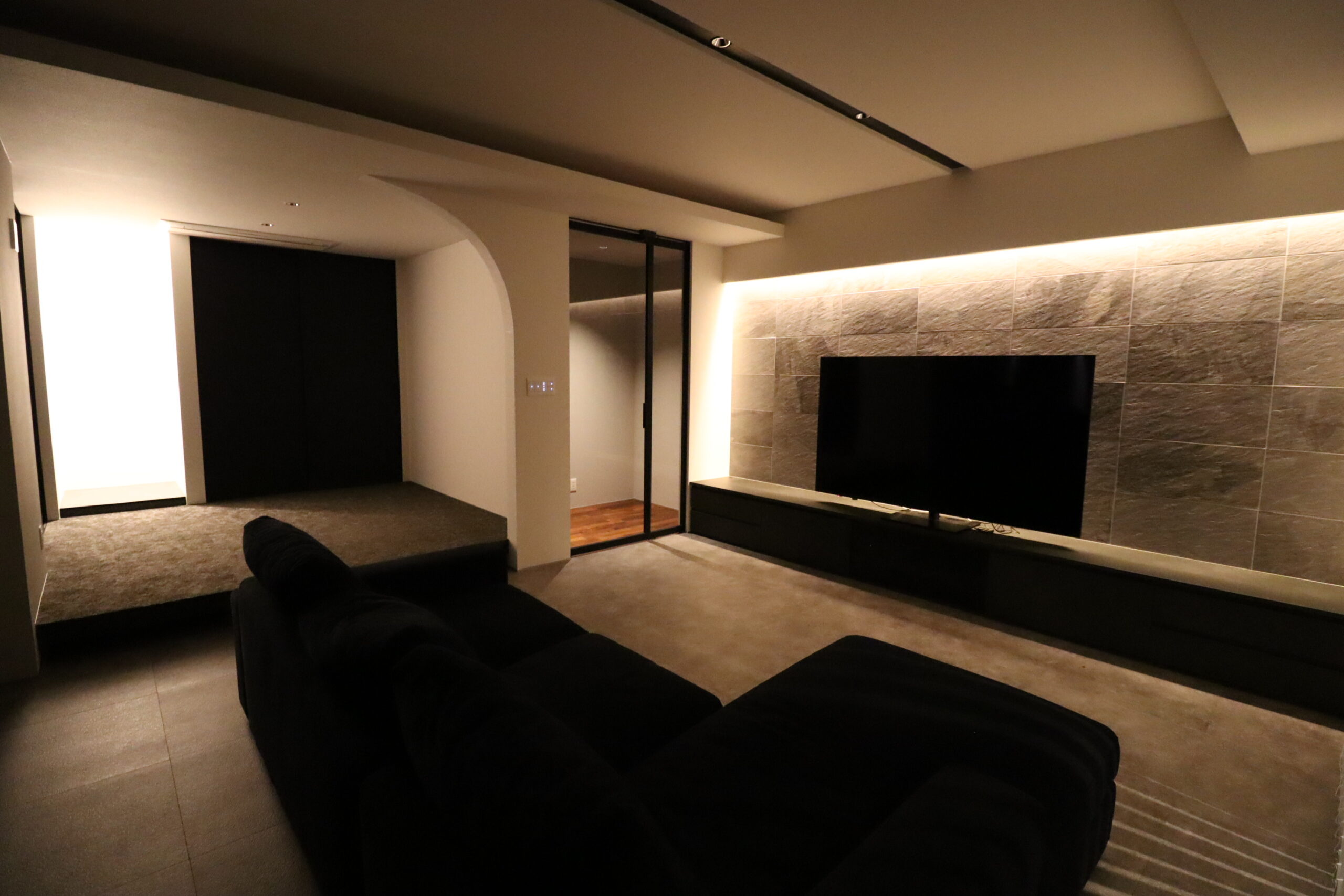 都会的なライフスタイルに合わせた、シンプルかつ洗練されたデザインが特徴です。間接照明や吹き抜けから差し込む自然光を巧みに取り入れ、時間とともに表情を変える空間を演出しました。石材や木材といった異なる素材を組み合わせることで、無機質になりがちな空間に温かみと上質感をプラス。生活の動線も考慮し、機能性と美しさを両立させた、安らぎと静寂に満ちた住まいが完成しました。