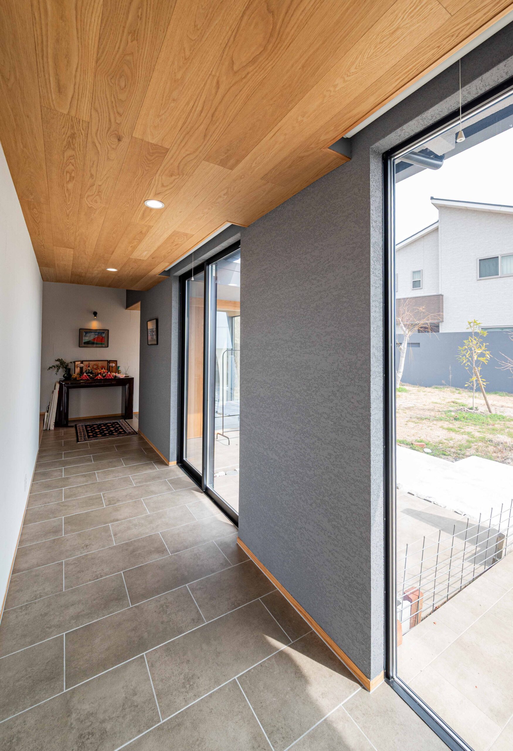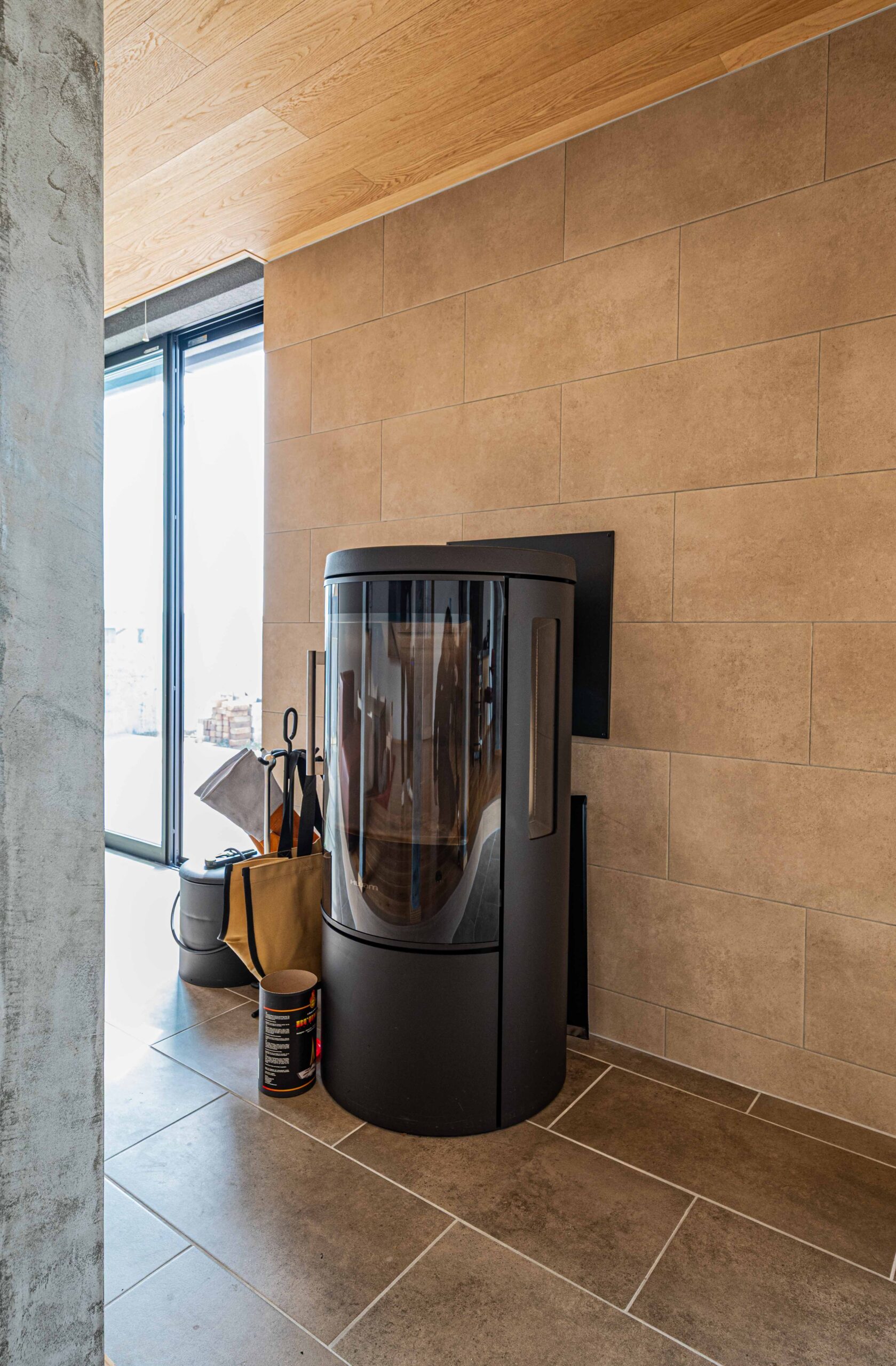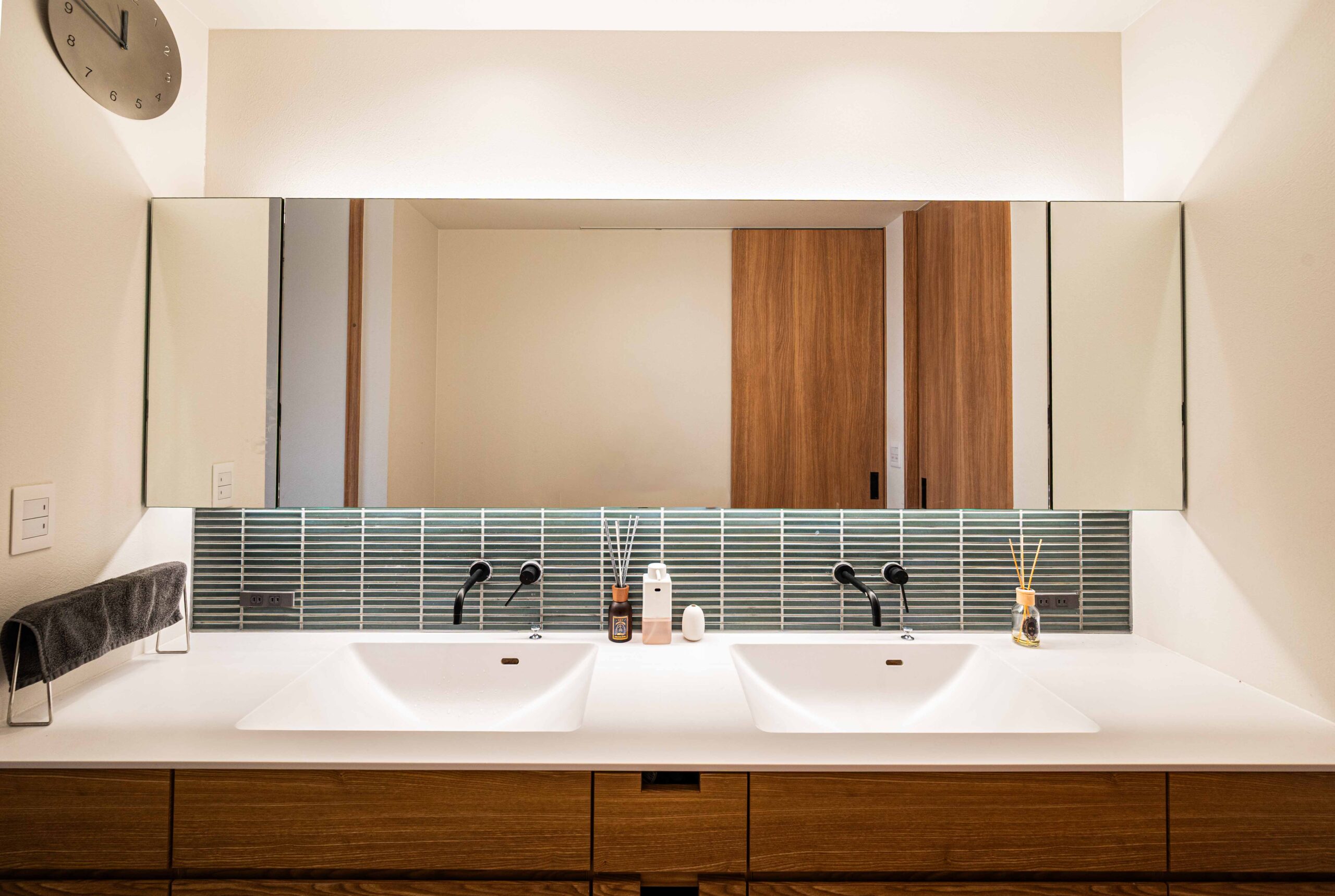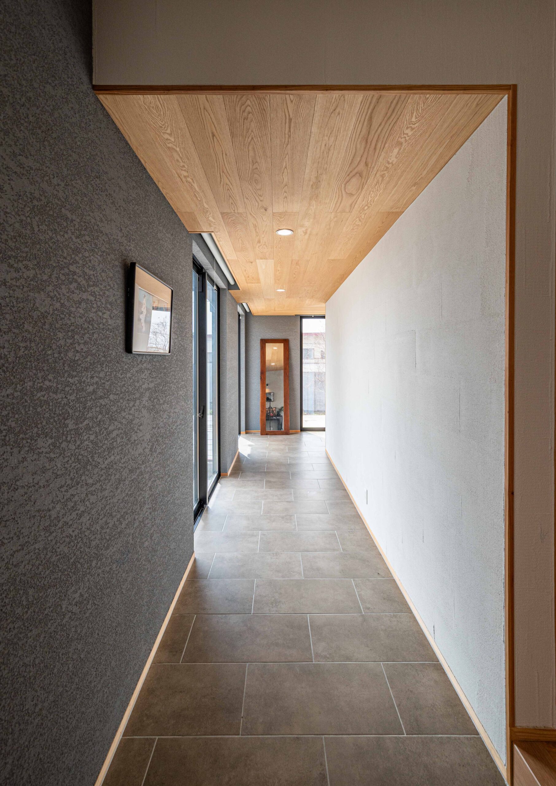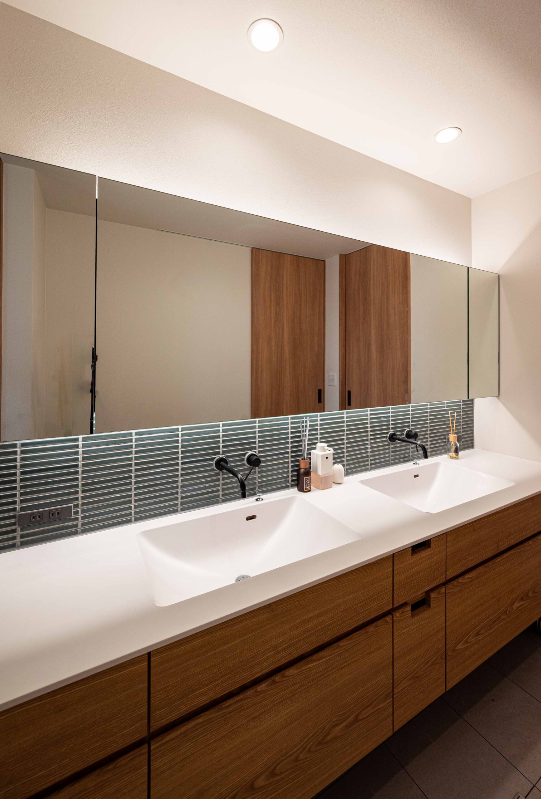 古民家から移築した古材の梁を活かし、歴史の温もりを感じさせる空間を創り出しました。一方で、現代的なシンプルさと機能性も兼ね備え、古材の魅力を最大限に引き立てています。薪ストーブやプライベートサウナといった特別な空間は、日々の暮らしに豊かさと安らぎをプラス。自然素材の心地よさと、住まう人の個性を大切にした住まいです。